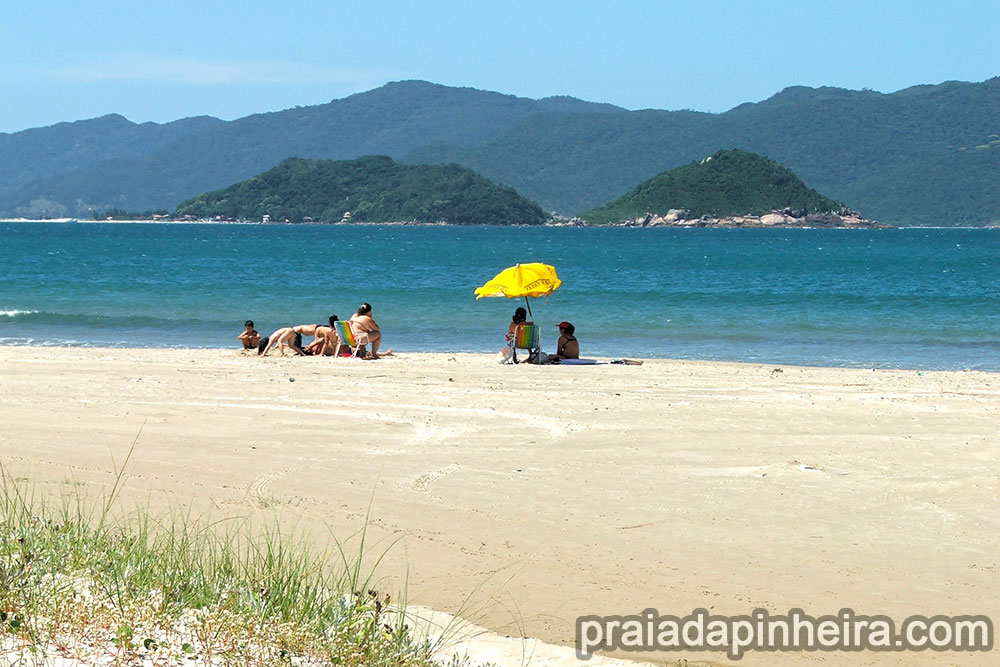 | Praia do Meio A Praia do Meio, como o próprio nome indica, está situada no centro da Enseada da Pinheira (Mar Aberto), é o trecho menos movimentado da região. Combina beleza natural com a praticidade de fácil estacionamento e uma ampla faixa de areia, garantindo espaço de sobra para o seu guarda-sol. Com mar geralmente calmo, é muito procurada por famílias e por quem busca tranquilidade, além de oferecer uma paisagem agradável e vista para a Ilha do Papagaio (conforme foto abaixo), sendo ideal tanto para o lazer durante o dia quanto para caminhadas ao entardecer. ![]() |