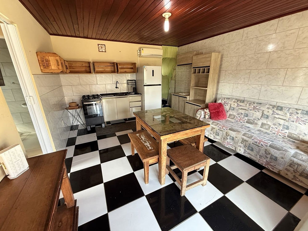 150 metros da praia. As casas contam com 01 e 03 dormitórios, climatizadas, cozinha completa, internet Wi-Fi e acomodações para 04 e 08 pessoas.