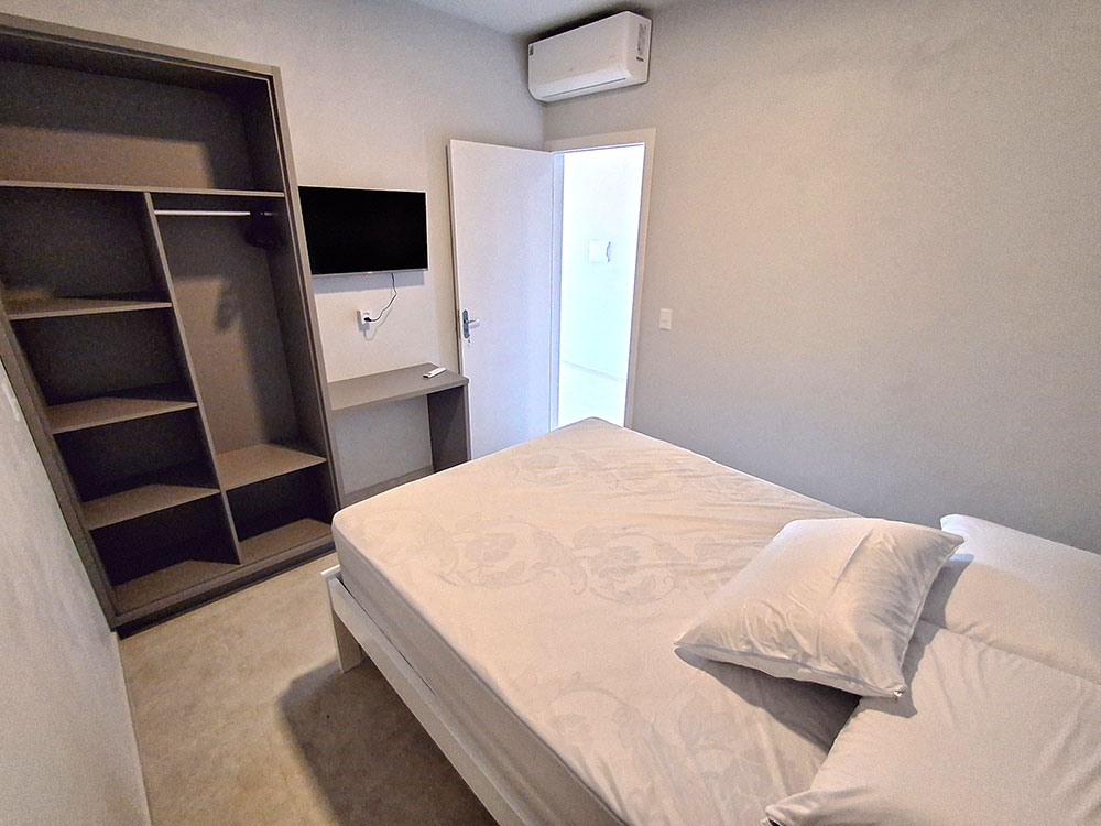 - 01 Dormitório de casal (com ar condicionado, Smart TV e cama auxiliar)