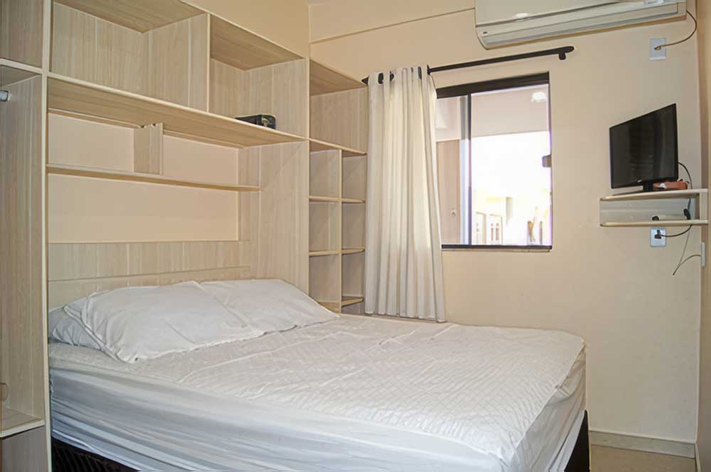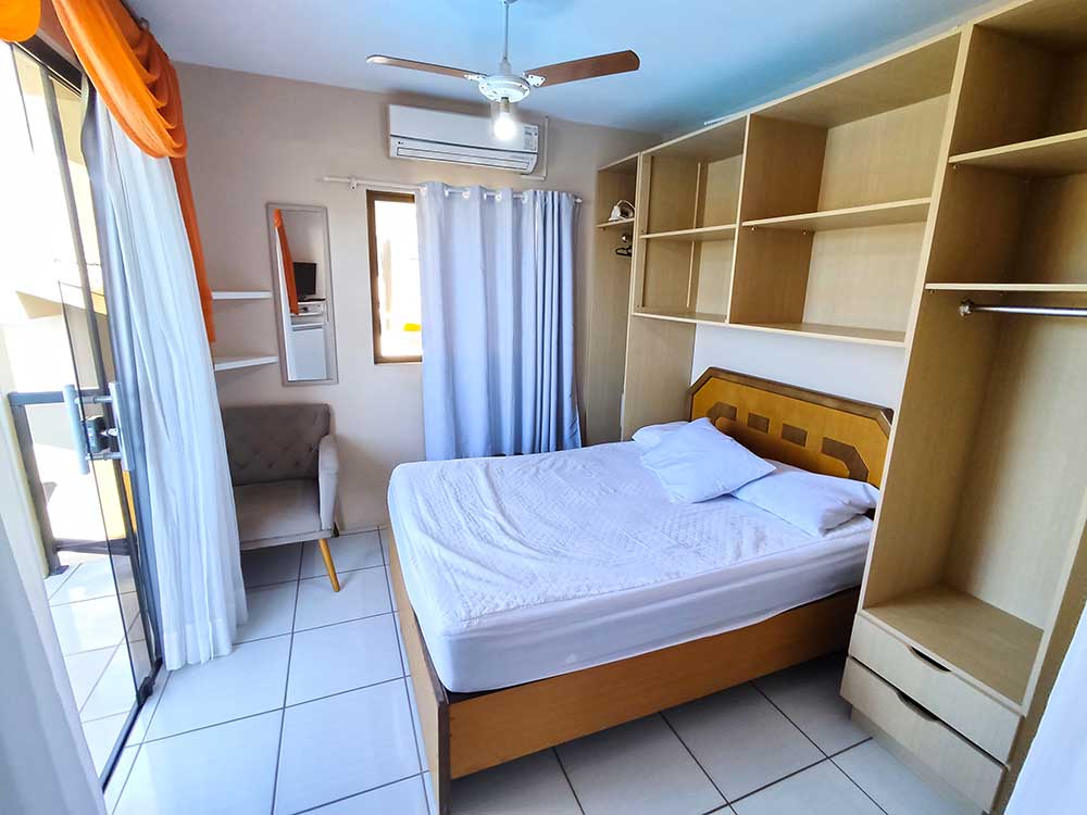 - 02 quartos de casal com ar condicionado (sendo 01 quarto com 01 cama de casal + 01 cama de solteiro)