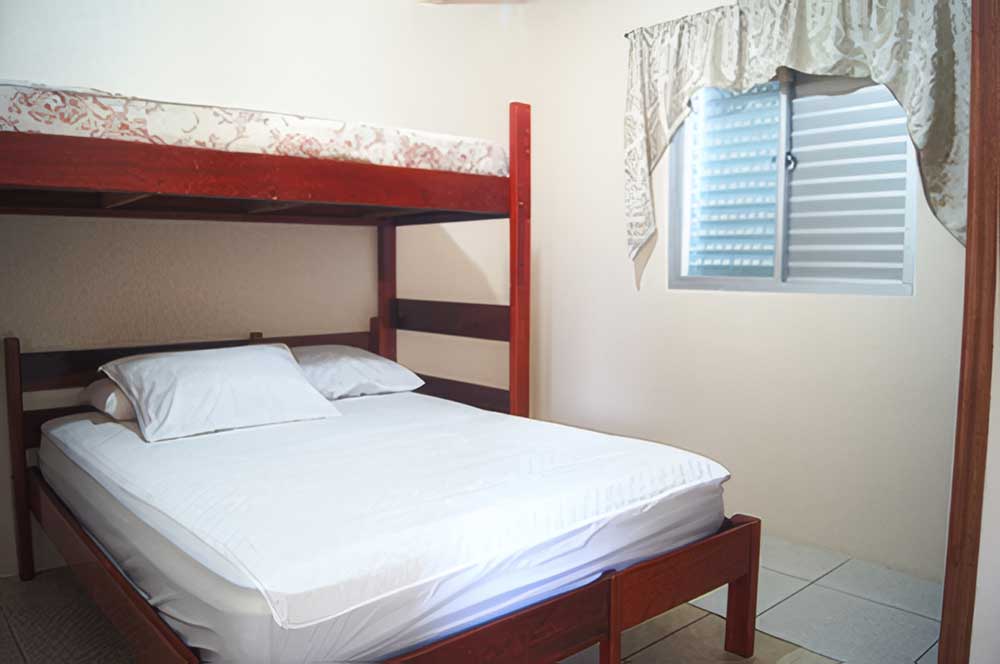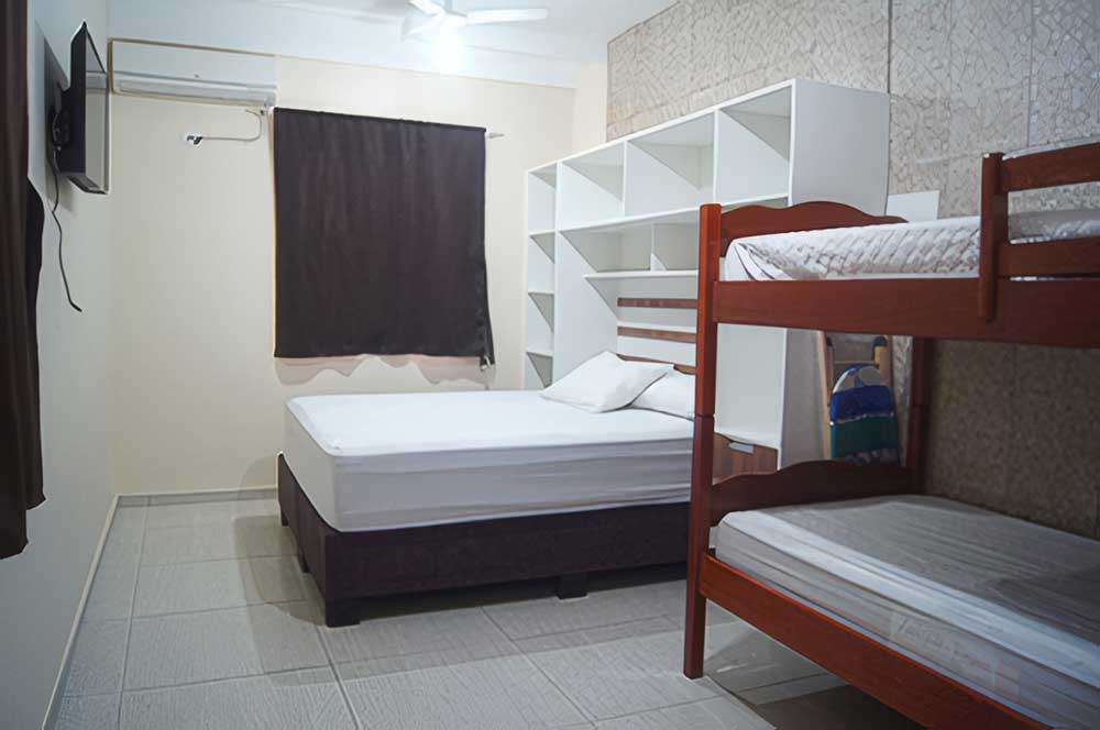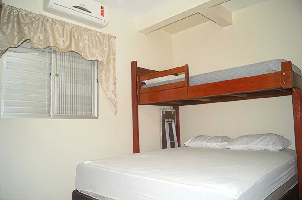 - 02 quartos de casal com ar condicionado (sendo um quarto com 01 cama de casal + 01 beliche, ambos com ventilador de teto e TV 32")