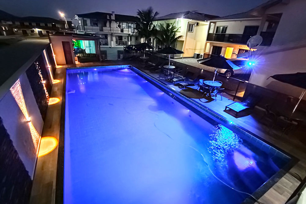 Piscina aquecida com energia solar e amplo espaço para estacionamento.