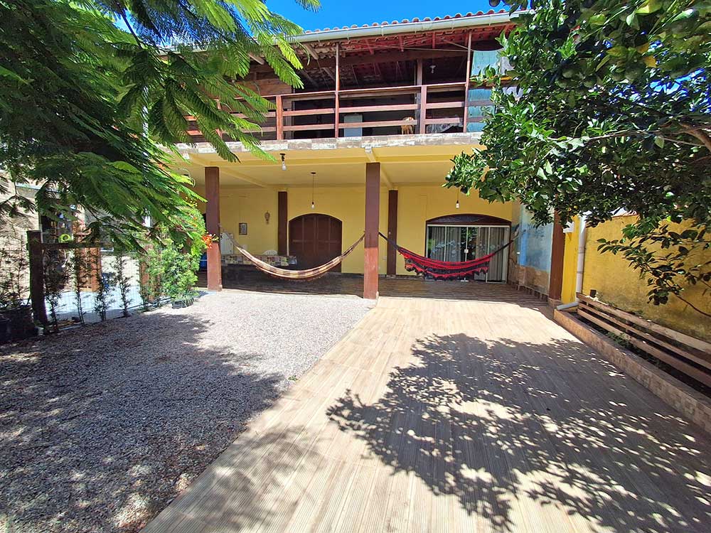 - Varanda ampla (c/ área de lazer, churrasqueira, espetos, grelha, balcão, pia, mesa para 08 pessoas e 02 redes)