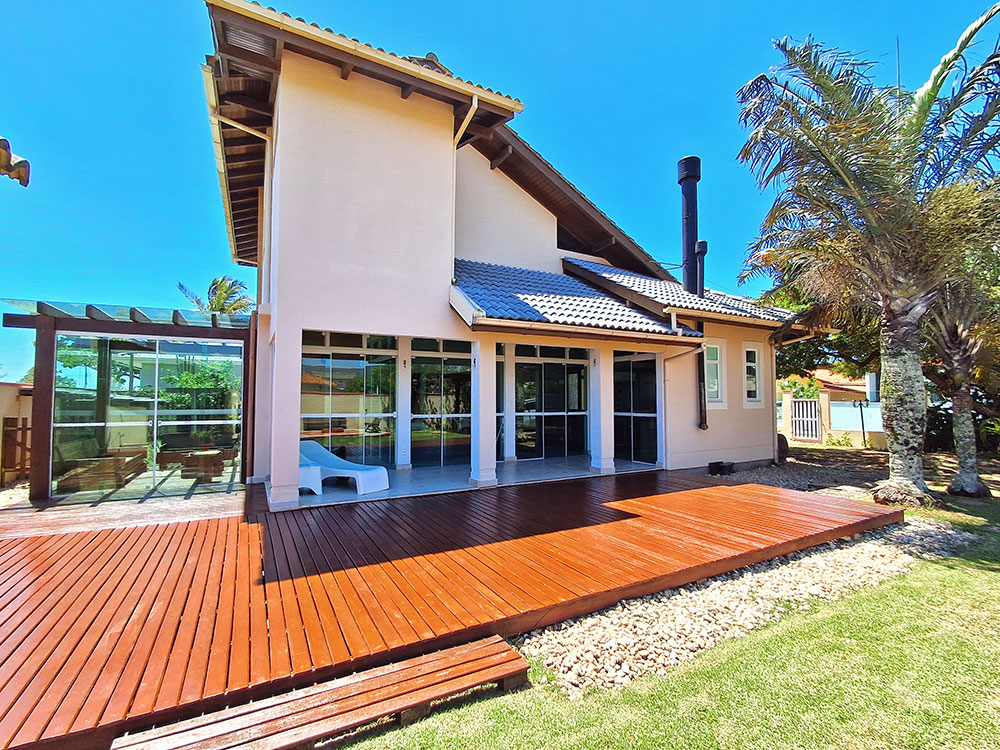 O terreno é dividido com 02 casas independentes, a dos proprietários e a dos veranistas. A dos veranistas inclui a piscina, churrasqueira e quintal totalmente privativo aos locatários.