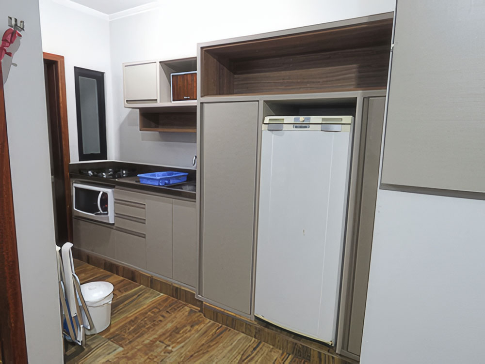 Quarto com cama de casal; não fornecemos roupa de cama mesa e banho.