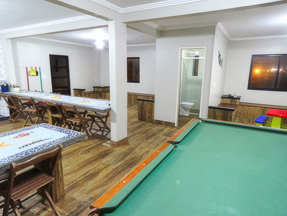 No mesmo espaço temos duas salas de estar, para reuniões e conversas animadas, mesa de snooker oficial e mini snooker, para seu lazer à noite ou em dias de chuva. Do lado de fora do espaço há um terraço para um gostoso banho de sol, tendo como pano de fundo aquela deslumbrante natureza.